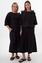 Комплект выполнен из вязаного трикотажа лапша, в составе которого 50% вискозы и 50% акрила. Тщательно подобранный материал придает мягкость и гибкость, делая костюм приятным на ощупь и комфортным в жизни. Вискоза дарит шелковистость и легкость, а акрил повышает устойчивость к износу и деформации, сохраняя изначальный вид дуэта.