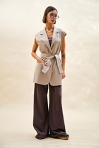 06.04 Vilatte Жилет на запАх с поясом из плотного лиоцелла D27.004 темно-синий