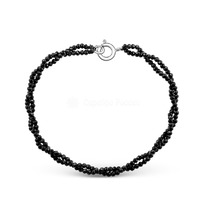 Браслет из серебра с бусинами из синтетической чёрной шпинели родированный - Тро