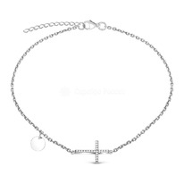 Браслет женский из серебра с фианитами родированный - Гвозди в виде креста
