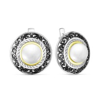 Серьги из серебра с культ.жемчугом, чернением и золочением родированные