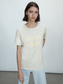 Massimodutti CAMISETA TEXTO MANGA CORTA ALGODN VERDE CLARO