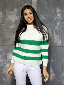 ESENIA Джемпер женский полушерстяной с полосками - Белый/Зелёный