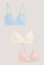 Наслаждайтесь легкой поддержкой и превосходным комфортом с этим набором из трех укороченных топов без швов. Модели, изготовленные из эластичной ткани синего, белого и розового цветов, имеют формованные чашки для гладкой поверхности. Узкие регулируемые бретели и эластичная лента под грудью завершают образ.