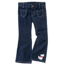 Новые джинсы известного, американского бренда Gymboree, Kitty Jeans. Особенность этих джинсов является: вышитая кошечка, размер «slim» с регулируемой талией для худенькой девочки и 4 кармана. Цвет: Denim. Состав: 99% хлопок, 1% спандекс. Размер: 8 slim для девочки 8 лет, ростом 130-137 см.