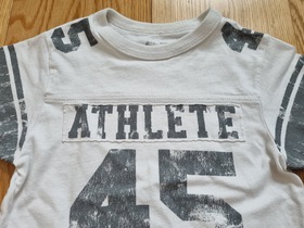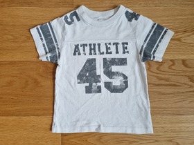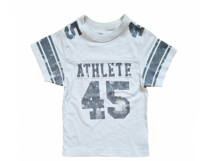 Б/У футболка известного, американского бренда ChildrensPlace, Модная детская футболка с ребристым воротником и короткими рукавами. Сшита одним из самых известных производителей одежды для детей в США, компанией The Childrens Place, выполнена из комфортного трикотажной хлопка. Отделка с аппликацией, спортивный дизайн, короткие рукава, качественный трикотаж - это детская футболка пригодится малышу в комплекте со светлыми брюками или однотонными шортами. Термо-этикетка, не царапает кожу малыша. Цвет: white. Состав: 100% хлопок. Размер: 4T для мальчика 4 лет, ростом 96-104 см., весом 16-18 кг. Состояние: б/у, отличное. Замеры: длина по спинке 43 см, длина рукава по внешнему шву 12 см, длина рукава по внутреннему шву 6 см, ширина между плечевыми швами 28 см, ширина между подмышек 32 см, ширина подола 32 см.