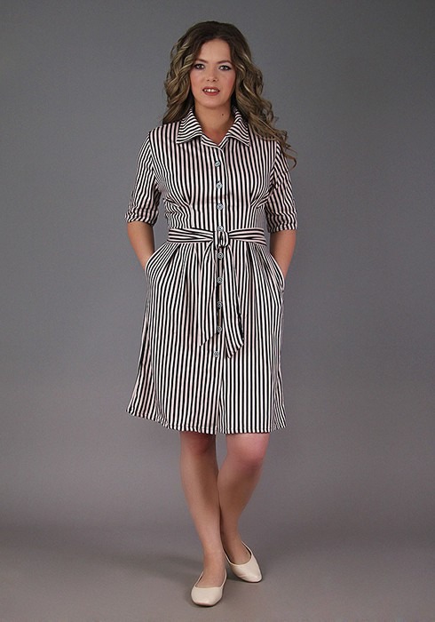 Халат для деловых дам, позволяющий даже дома быть на высоте! Материал строгой, но в то же время спокойной расцветки, прекрасно сидит и не требует особого ухода. Модель халата с пуговками обладает аккуратным воротником, коротким рукавом с дополнительной пуговкой, декоративными выточками с отстрочкой и поясом. Идеальный вариант для девушек, ценящих достойный внешний вид в любых ситуациях.