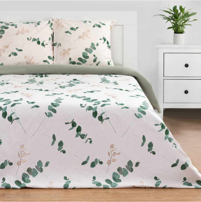 Комплект постельного белья из поплина Эвкалипт белый/олива