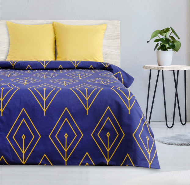 — Комплект постельного белья из поплина Лепесток синий/жёлтый