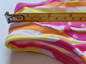 Новый купальник известного, американского бренда Gymboree, Octopus Cut-Out One-Piece Swimsuit. Особенность: с вышивкой, стразой и аппликацией в виде осьминожки. Защита от ультрафиолета UPF 50+. Цвет: Sunset Stripe. Состав: 82% нейлон, 18% спандекс. Размер: 12 для девочки 12 лет, ростом 147,5-152,5 см. Замеры: ширина между бретелек 19 см, ширина между подмышек 34 см, ширина бедер 34 см, длина от паха до выреза груди 51 см, длина от паха до края бретелек 69 см.