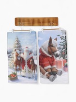 Набор кухонных полотенец 2шт из рогожки Лошадь и Дед Мороз