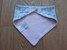 Б/У слюнявчик известного, американского бренда Gymboree, FARM & STRIPE BIB. Застежка на кнопки в два положения. Двухсторонний нагрудник с печать домашних животных и розовых полосок с обратной стороны, по всей длине. Машинная стирка. Цвет: White. Состав: 100% хлопок, интерлок. Размер: One Size, для девочки. Состояние: б/у, отличное.