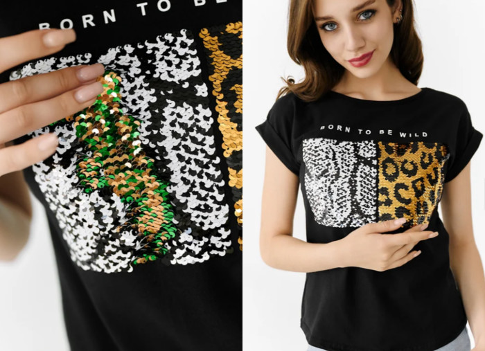 Футболка полуприлегающего силуэта, средней длины, с округлой горловиной. Рукав цельнокроеный, короткий, на манжете с отворотом.
