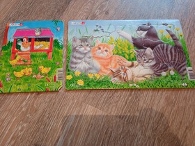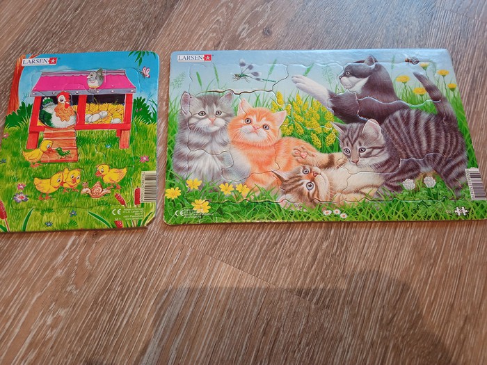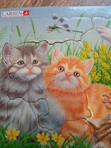 Пазл с котятами средний по размеру, 10 деталей. Одна деталь с потертостями.