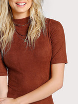 Это размер М, но и он оказался мне мал в бёдрах. Полуобхват бёдер у платья 40 см (+ хорошо тянется). У меня бёдра 86, платье одеваю легко, но бёдра в обтяг мне не нравятся. Длина хорошая до роста 160 см. Ткань очень приятная на ощупь, как нежная замша!
