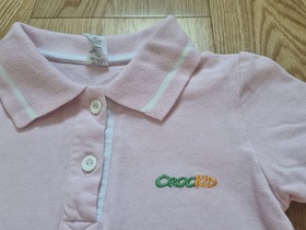 Б/У, платье-поло популярного российского производителя одежды Crockid. Это платье-поло, созданное для очаровательного образа и удобной посадки, изготовлено из фирменной сетки пике и отличается легким силуэтом. Это дышащее хлопковое платье-поло идеально для праздников и достаточно удобно для игр на детской площадке. Ребристый воротник, планка с двумя пуговицами, короткие рукава. Вышитый логотип «Crockid» на левой груди. Цвет: розовый. Состав: 100% хлопок. Размер: 116 для девочки 6 лет, ростом 116 см. Сделано в Узбекистане. Замеры: длина по спинке 52 см, длина рукава по внешнему шву 10 см, длина рукава по внутреннему шву 4 см, ширина между плечевыми швами 26 см, ширина между подмышками 30 см, ширина подола 55 см. Состояние: б/у, хорошее (спереди есть не большие дырочки).