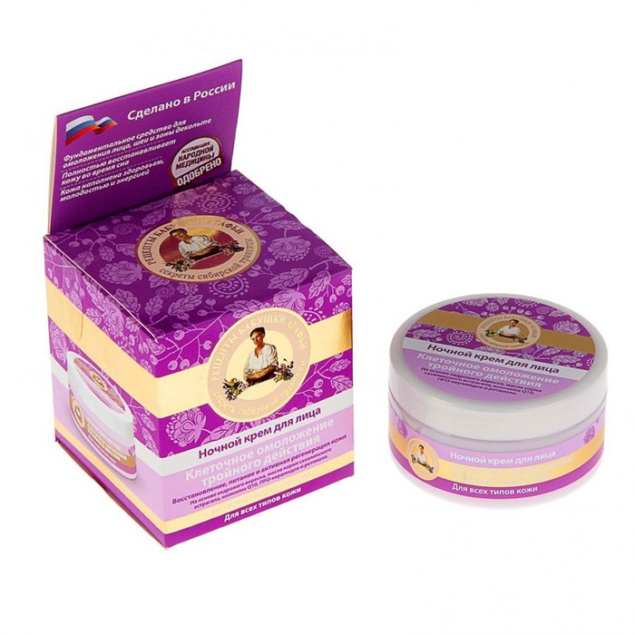 Ночной крем для лица тройного действия созданный по рецептам сибирской травницы Агафьи, эффективно действует на клеточном уровне и восстанавливает кожу во время сна, обеспечивая ее активное питание и регенерацию. Кедровой вереск содержит большое количество органических кислот и дубильных веществ, благодаря чему он прекрасно тонизирует и освежает кожу. Масло корня сахалинского астрагала богато эфирными маслами, флавоноидами и органическими кислотами. Оно успокаивает и смягчает кожу, освобождает ее от накопленного за день напряжения. Коэнзим Q10+ восстанавливает и омолаживает кожу во время сна, придает ей упругость и эластичность. ПРО-керамиды и ретинол глубоко питают и разглаживают кожу, сокращая глубокие и мелкие морщины.