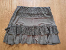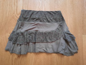 Б/У юбка известного французского бренда Pimkie. Многоуровневая, легкая летняя юбка для девочки с эластичной талией на резинке, без подкладки. В такой непринужденной юбочке ваша дочка может гулять, путешествовать или играть с друзьями, не испытывая ни малейших неудобств в жаркую погоду. Цвет: brown. Состав: 92% вискоза, 8% эластан. Размер: S, для девочки 5 лет, ростом 110 см. Состояние: б/у, отличное. Замеры: длина 29 см, ширина резинка 5 см, ширина талии 26 см, ширина подола 60 см.