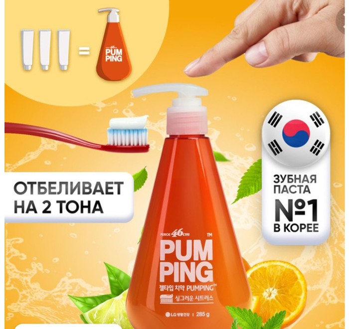 Зубная паста PUMPING гелевая с дозатором, ОТБЕЛИВАЮЩАЯ, гель уход для зубов и за полостью рта Корейская отбеливающая зубная паста Perioe Pumping в форме геля с мягким и свежим цитрусовым вкусом бережно и эффективно очищает поверхность зубов, заботится о состоянии полости рта и повышает эстетический внешний вид. Способствует устранению налета от чая, кофе и сигарет. Перио Пампинг это уникальный новый формат: зубная паста во флаконе с дозатором. Не нужно больше выдавливать пасту, достаточно просто нажать на помпу. Сделайте Вашу ежедневную чистку зубов приятной! Упаковка с помпой поможет экономично расходовать пасту. Гель быстро растворяется и пенится. Пузырьки зубной пасты обволакивают каждый зуб, проникая в самые труднодоступные места, тем самым уменьшают риск появления кариеса. Большой объем: флакон вмещает в себя 3 обычных тюбика зубной пасты.