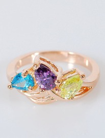 Кольцо с разноцветными фианитами "Трилистник
